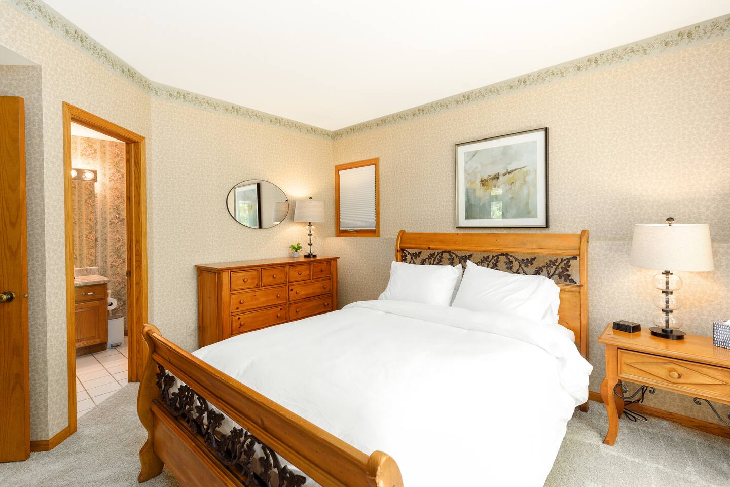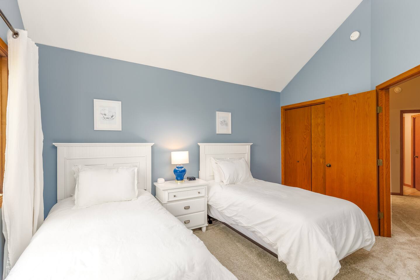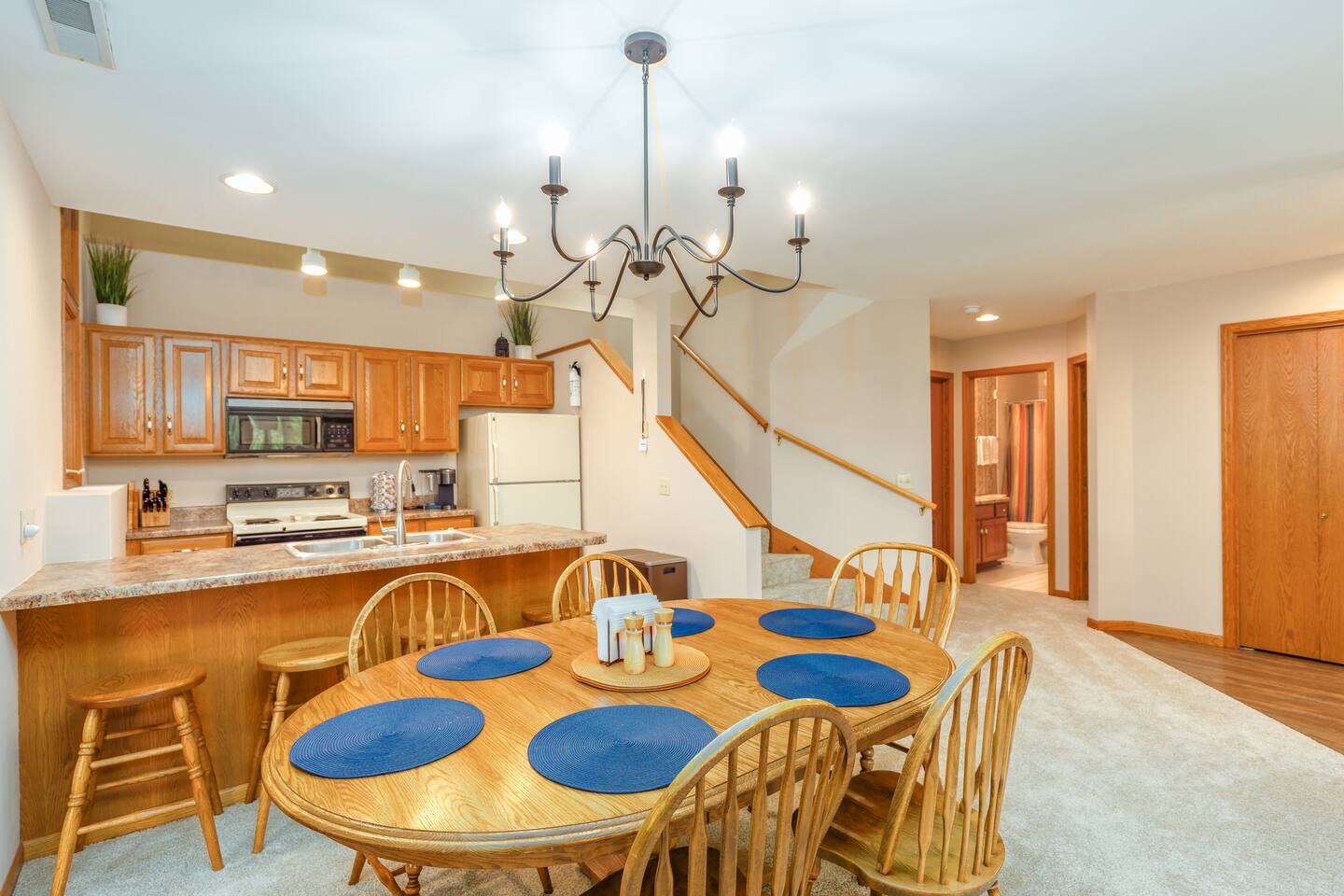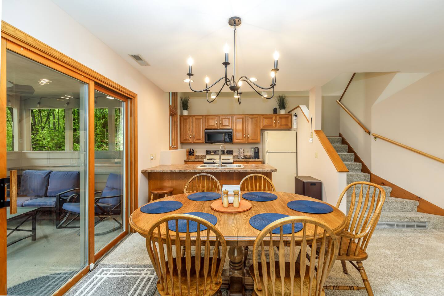 Home includes: - 2 bedrooms with queen beds with fresh white linens and comfortable pillows - 1 bedroom with 2 twins with fresh white linens and comfortable pillows - 2 full bathrooms - Kitchen is stocked with all the dishes, pots/pans, and silverware you need if you want to cook in - 65 inch Roku television in main living room - 43 inch Roku televisions in each separate bedroom -Gas grill available on deck -Screened in porch to enjoy the outdoors even if it’s raining - Keurig with pods included as well as a standard drip coffee maker -Board games to enjoy with your group - If there are young children in your group, 2 Pack & Plays and high chairs are available as well as a small selection of kids eating utensils to make packing a breeze There will be six Owner's Club Key cards hanging in the kitchen. With this card you will have access to the pools, fitness center, as well as the game room at the Galena Territory Owner's Club located at 2000 Territory Dr. Galena, IL. Or enjoy downtown Galena for the day with great restaurants and shopping only 8 miles away!