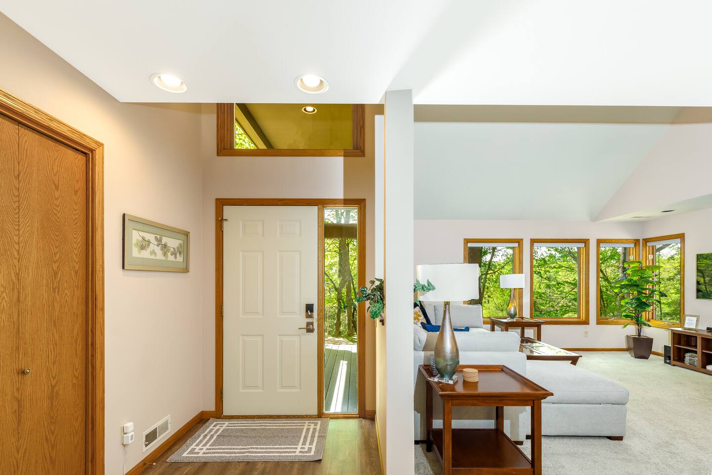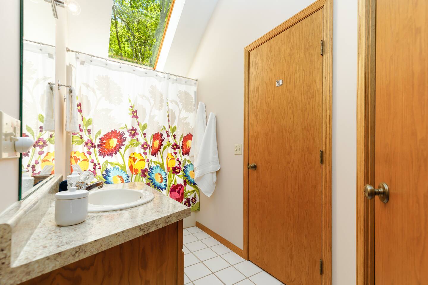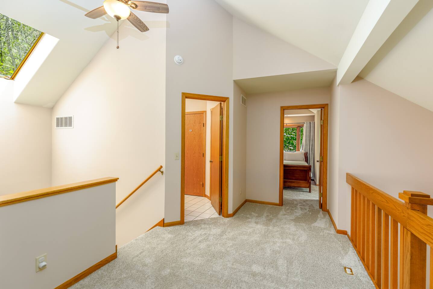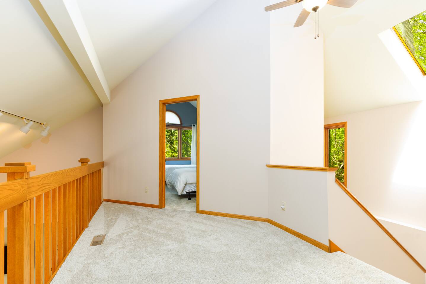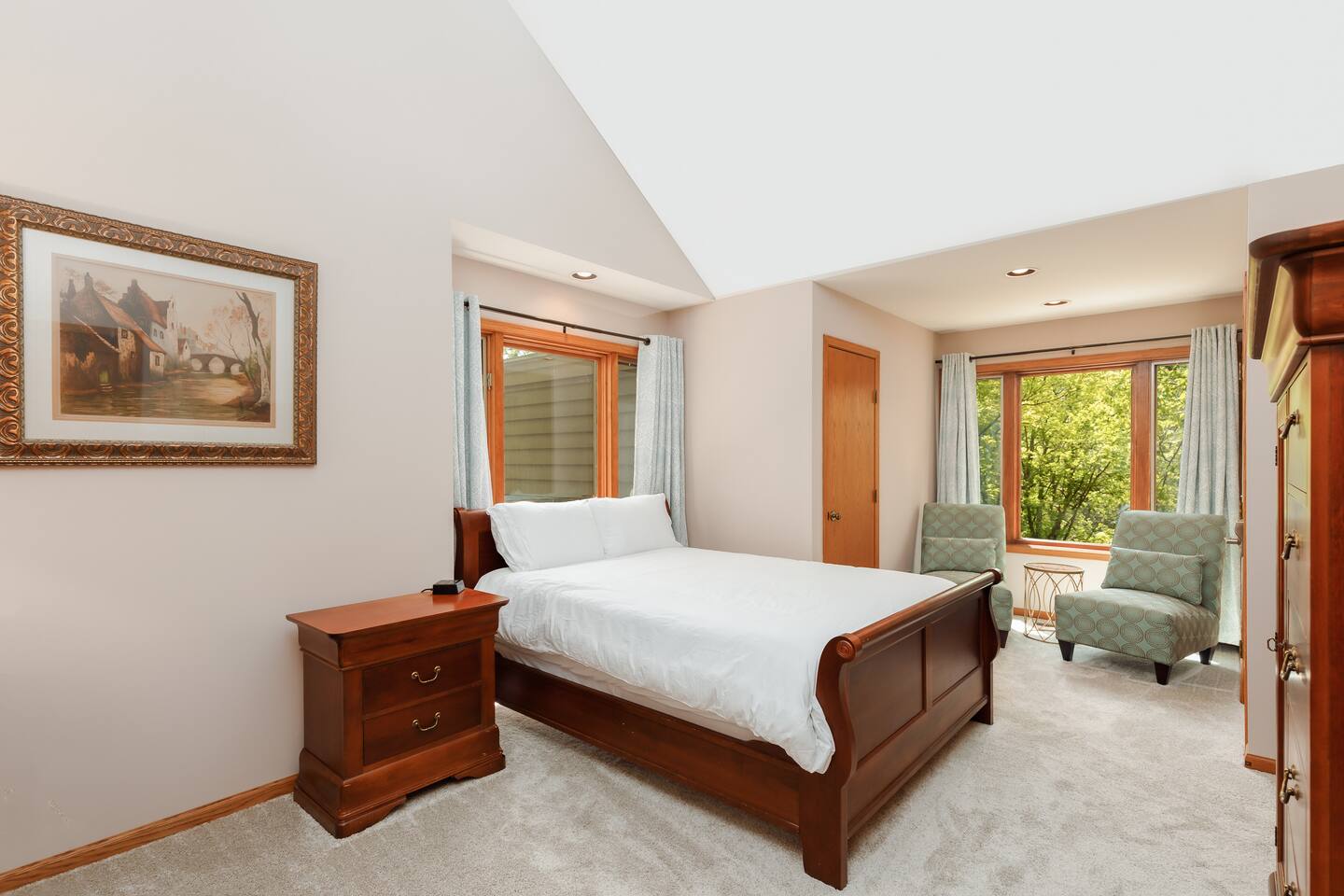 Enjoy wooded views from all windows and the privacy of over an acre with trees in every direction. Our home features a wood-burning fireplace, vaulted ceilings, screened in three-season room, and also a comfortable deck. The main floor includes a master bedroom with full bath, kitchen and dining areas, and our comfortable living room. Upstairs are 2 more bedrooms and another full bath. Perfect for a quick getaway, a weekend to relax, or a longer vacation to visit the beautiful Galena Territory!
