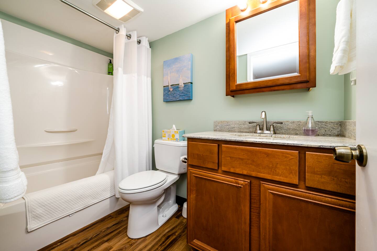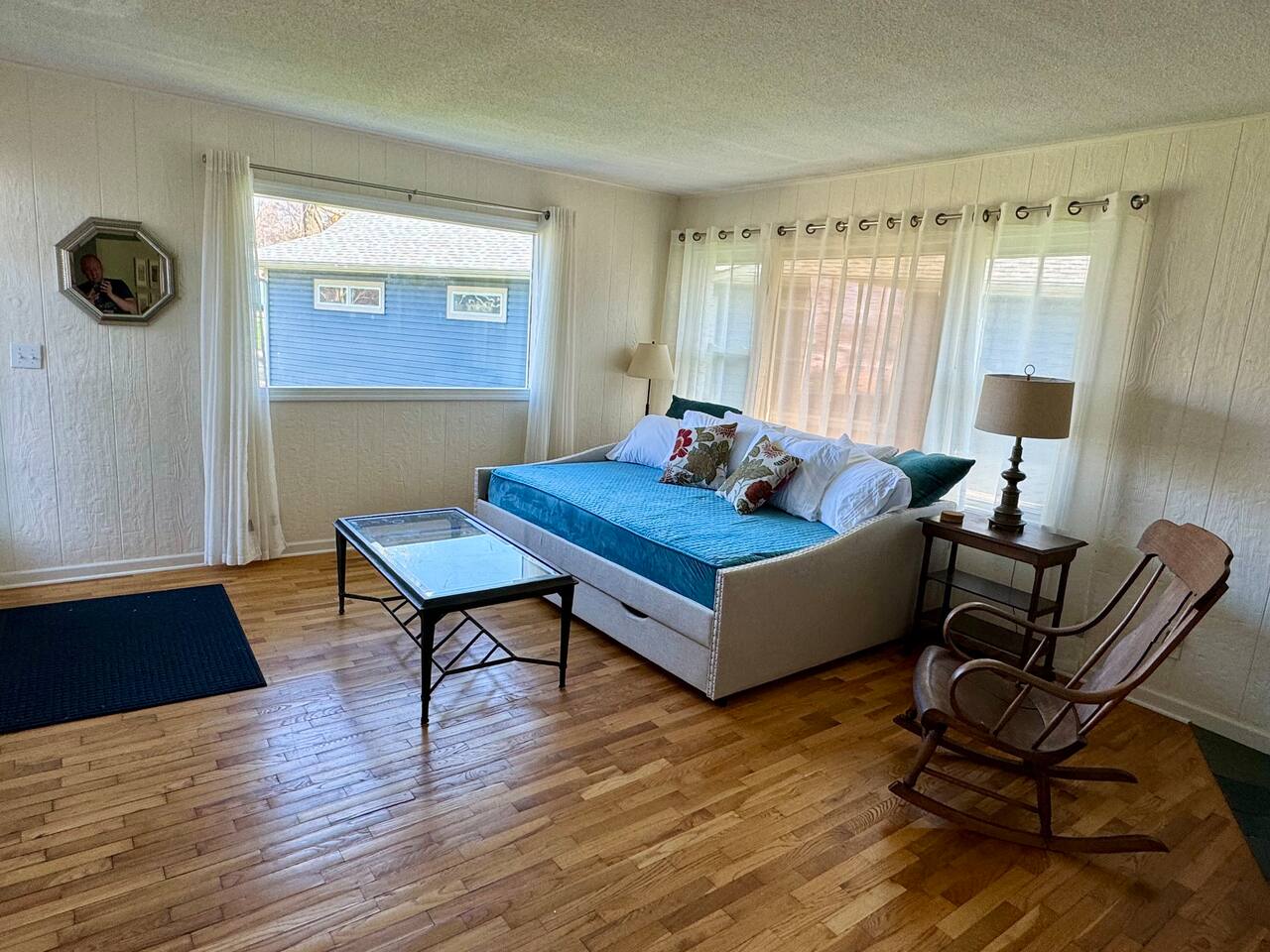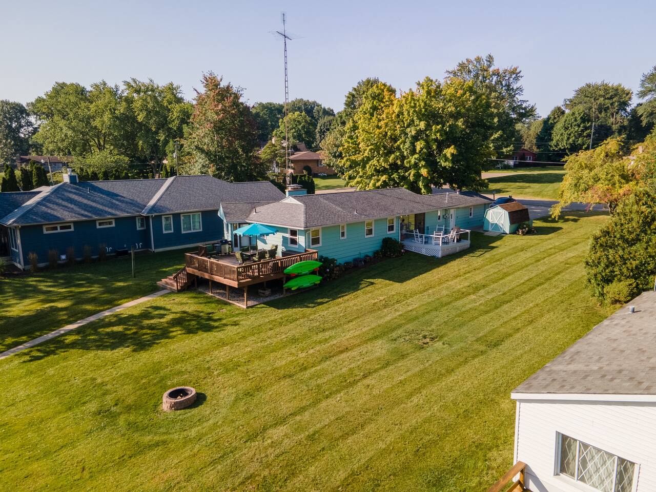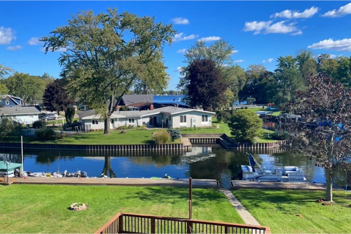 Room to stretch out both inside and out. Four Bedrooms, two decks, a fire pit, and plenty of yard space for games or other activities. Bring the toys - our 100 feet of waterfront leaves plenty of room for boats, jet skis, and anything you want to enjoy the lake to the fullest. The large rear deck has room and seating for friends and family to enjoy the parade of boats or our wonderful night sky. When you're ready to come inside, stream your favorite content from multiple internet connected TV's.