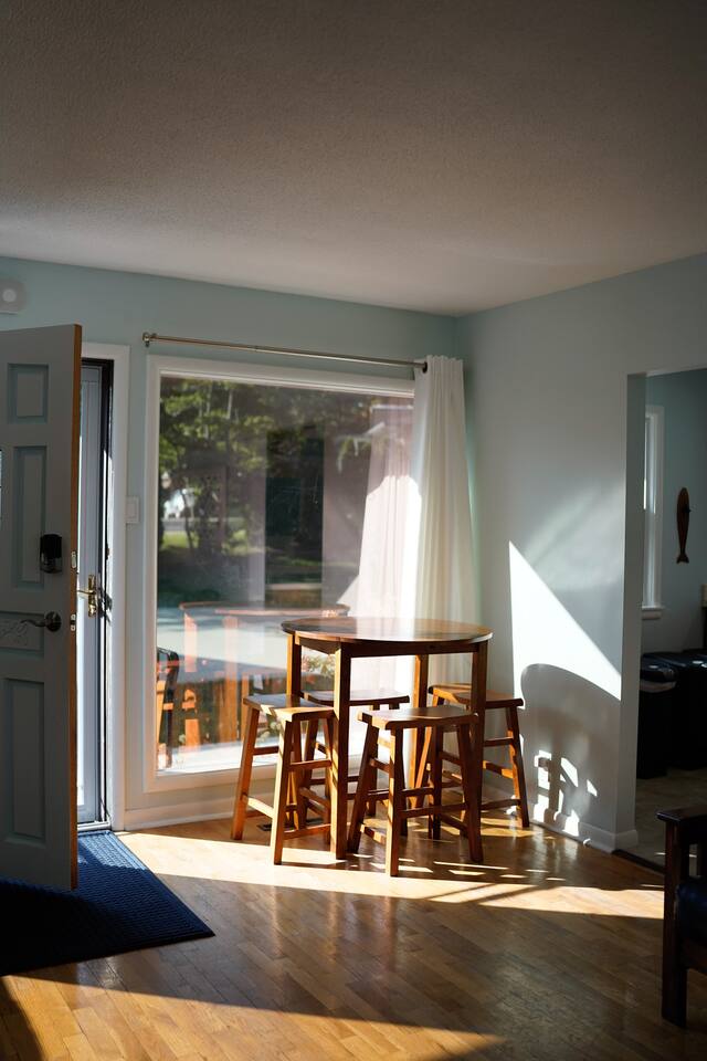 Our home is the perfect place to unwind. Lounge on the oversize deck with unobstructed views of the water or grill and kick back with dinner on the side deck, you will love this home and your vacation. Set up great for multiple families - there is a full bath, two beds, family room space, and lake access on the main floor as well as downstairs or let the kids rule the downstairs and enjoy the TV, foosball table, and stash of board and card games. - 3 bedrooms with queen beds with fresh white linens and comfortable pillows - 1 bedroom with 2 twins with fresh white linens and comfortable pillows - 2.5 baths - Kitchen is stocked with all the dishes, pots/pans, and silverware for feeding a large group. - Keurig with pods included as well as a drip coffee maker available if you want to bring your own coffee -65" HD TV upstairs. 45" TV downstairs. Both with Roku streaming devices - Fire pit waterside - Indoor dining table can fit up to 8, bar height table can fit an additional 4 - Walking distance to great bar/restaurant The Blackbird - Less than 5 minute drive to grocery store or Coloma restaurants - Great fishing on the lake and in the channel -2 Kayaks with paddles - If there are young children in your group, 2 Pack & Plays and high chairs are available as well as a small selection of kids eating utensils and toys to make packing a breeze